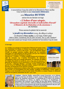 • Rencontre avec l’écrivaine palestinienne Ahlam Basharat le 13 décembre à Lyon