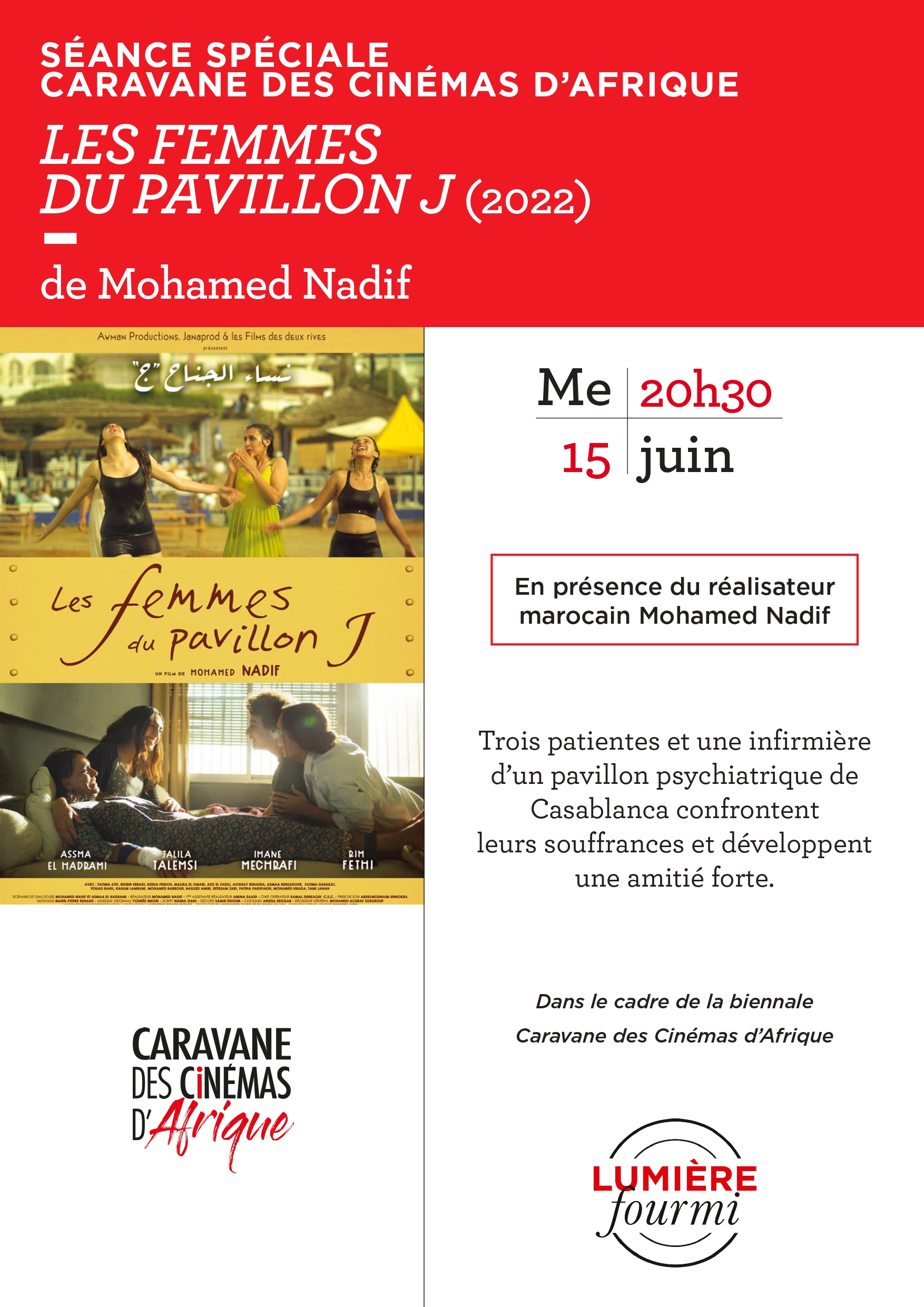 Dans le cadre de la biennale Caravane des cinéma d’Afrique, Coup de Soleil en AURA coorganise avec le cinéma Lumière Fourmi la projection du film « Les femmes du pavillon J », le mercredi 15 juin à 20h30. Une réalisation de Mohamed Nadif qui se présent pour répondre à vos questions à la fin du film.