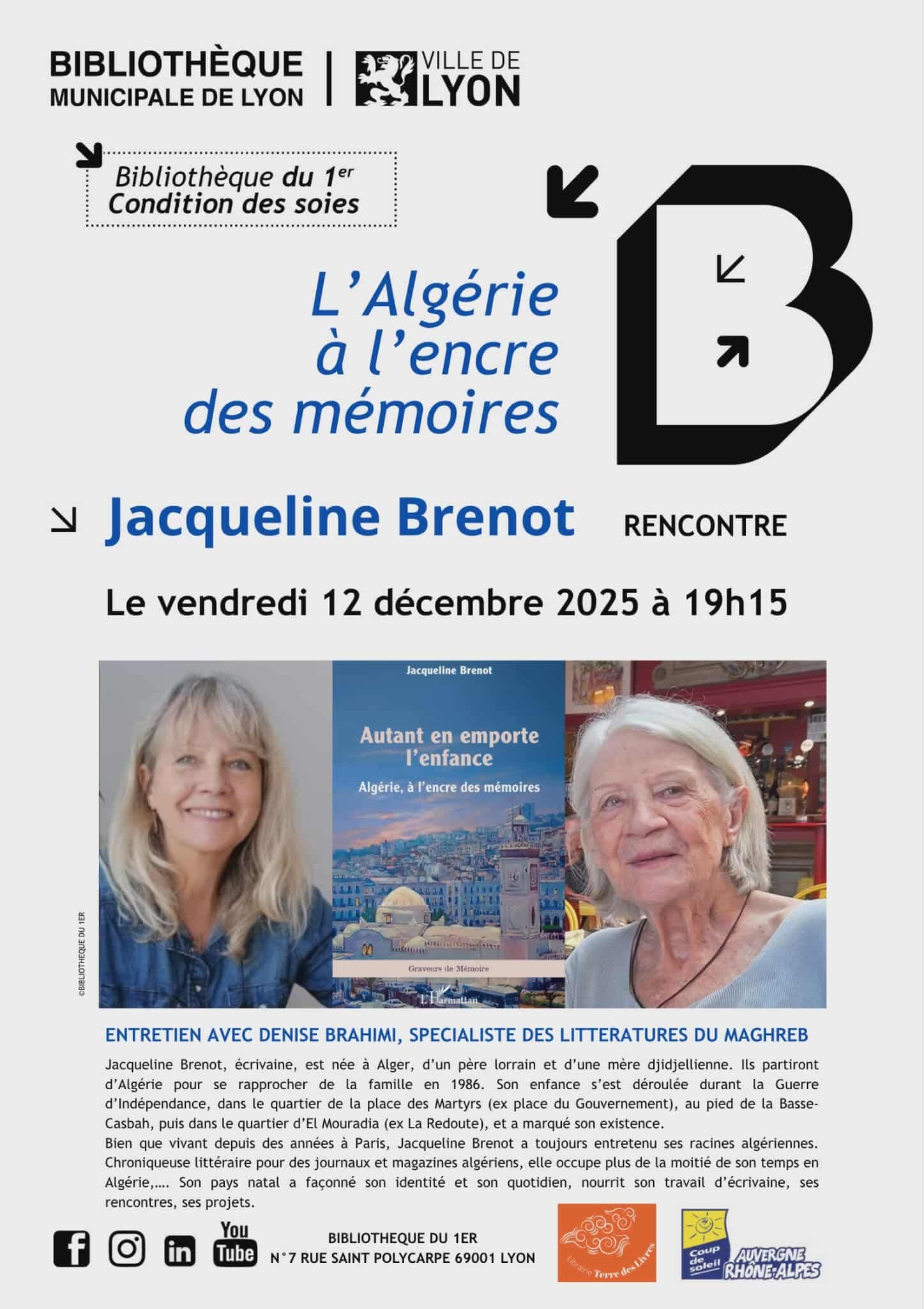 Notre association est volontiers partenaire de cette rencontre, dont l’animatrice est la rédactrice en chef de notre Lettre culturelle franco maghrébine, Denise Brahimi.